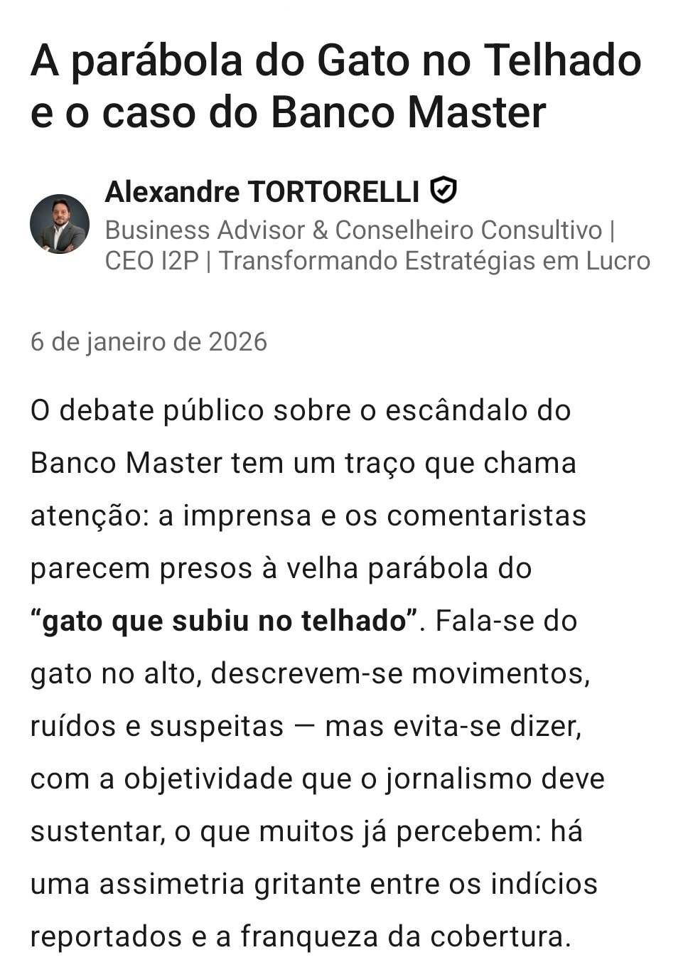 A Parábola do Gato no Telhado e o Caso do Banco Master